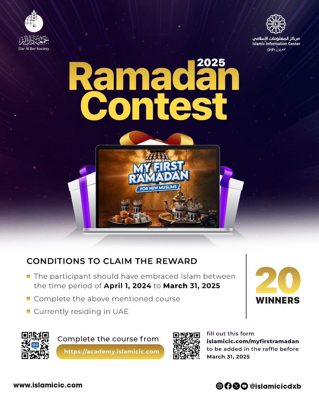 New Muslims can complete the "My Ramadan Course" on the eLearning Academy, gaining valuable insights into Ramadan. Upon completion, UAE residents can apply for a raffle with exciting prizes. Be sure to apply by March 31, 2025!
